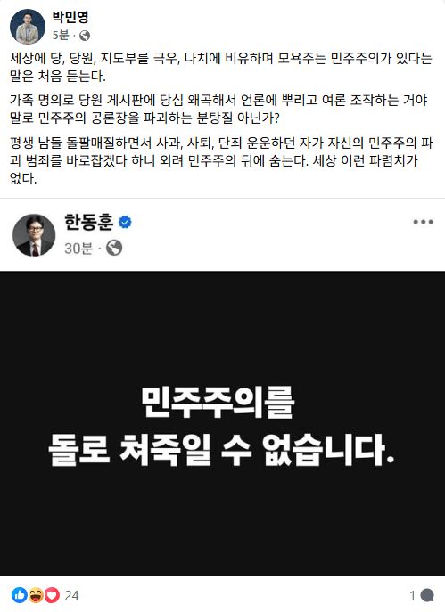 박민영 대변인 페북으로 한가발 직격!!