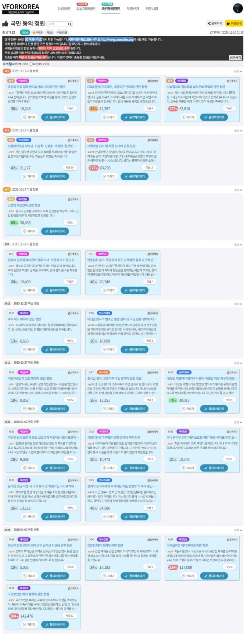 2024년 9월6일~10월6일까지 5만명의 동의를 얻어 행안위로 넘어갔지만 아직도 상정되지 않았어