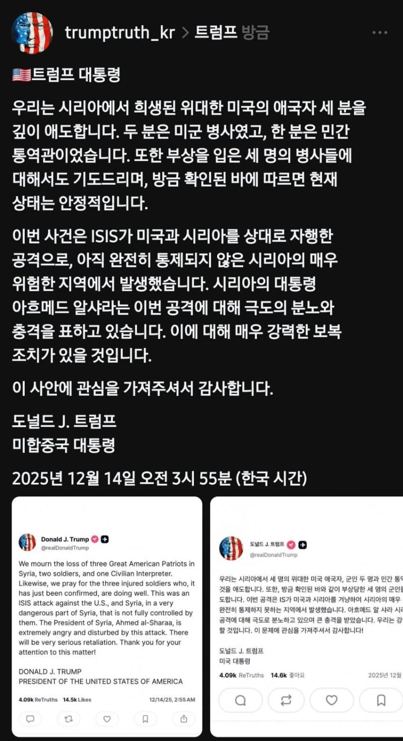 https://www.threads.com/@trumptruth_kr/post/DSOzC3tkR2t?xmt=AQF05Dit0FswxzY3nnlGmC1-yrzzZzjsDSjVlu5pa_SH7PbJtrmIXXy-___LxeZdS3pXQi4X&slof=1 돌아가신 미군의 명복을 빕니다